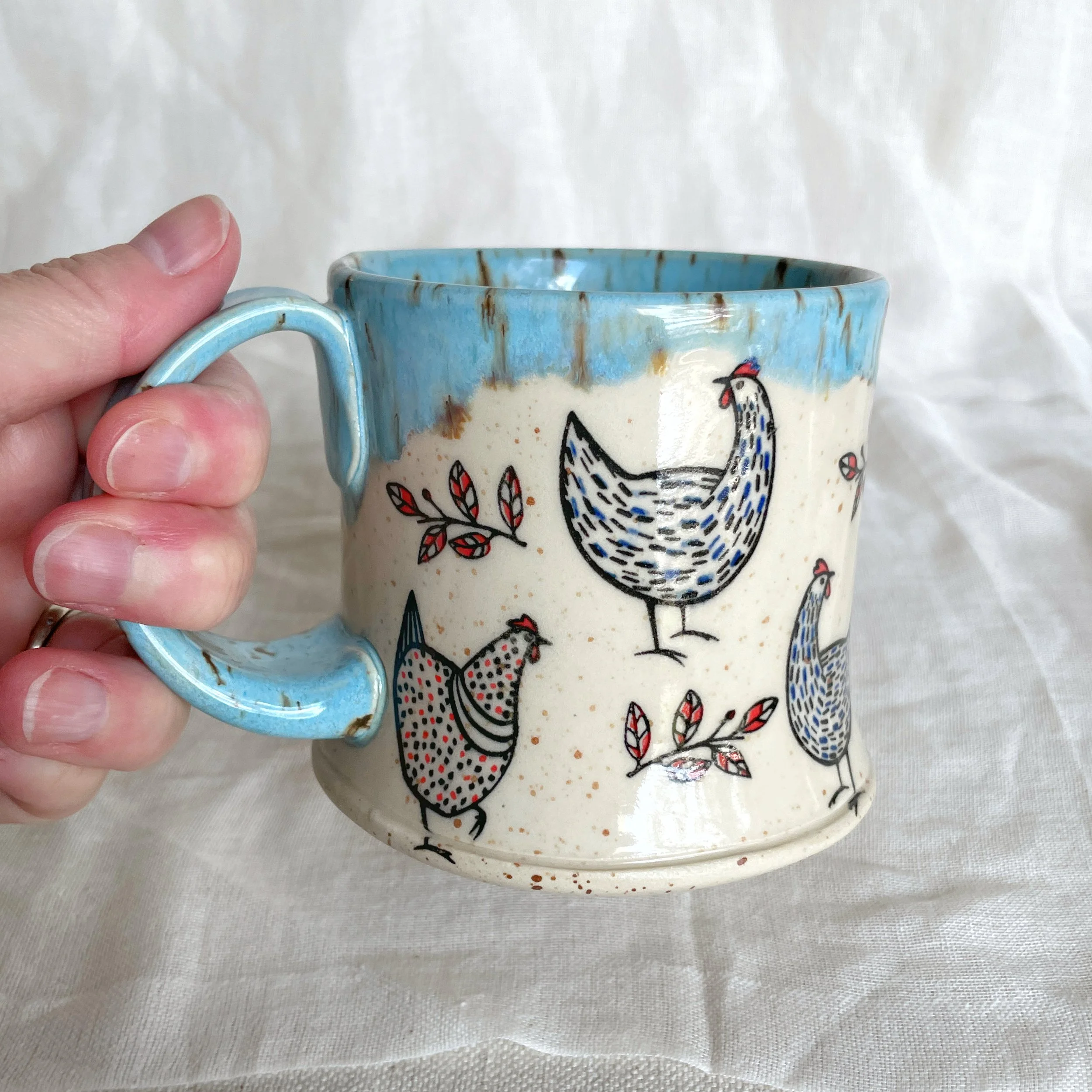 Strawberry Chickens 11.5 oz Handmade Pottery Mug